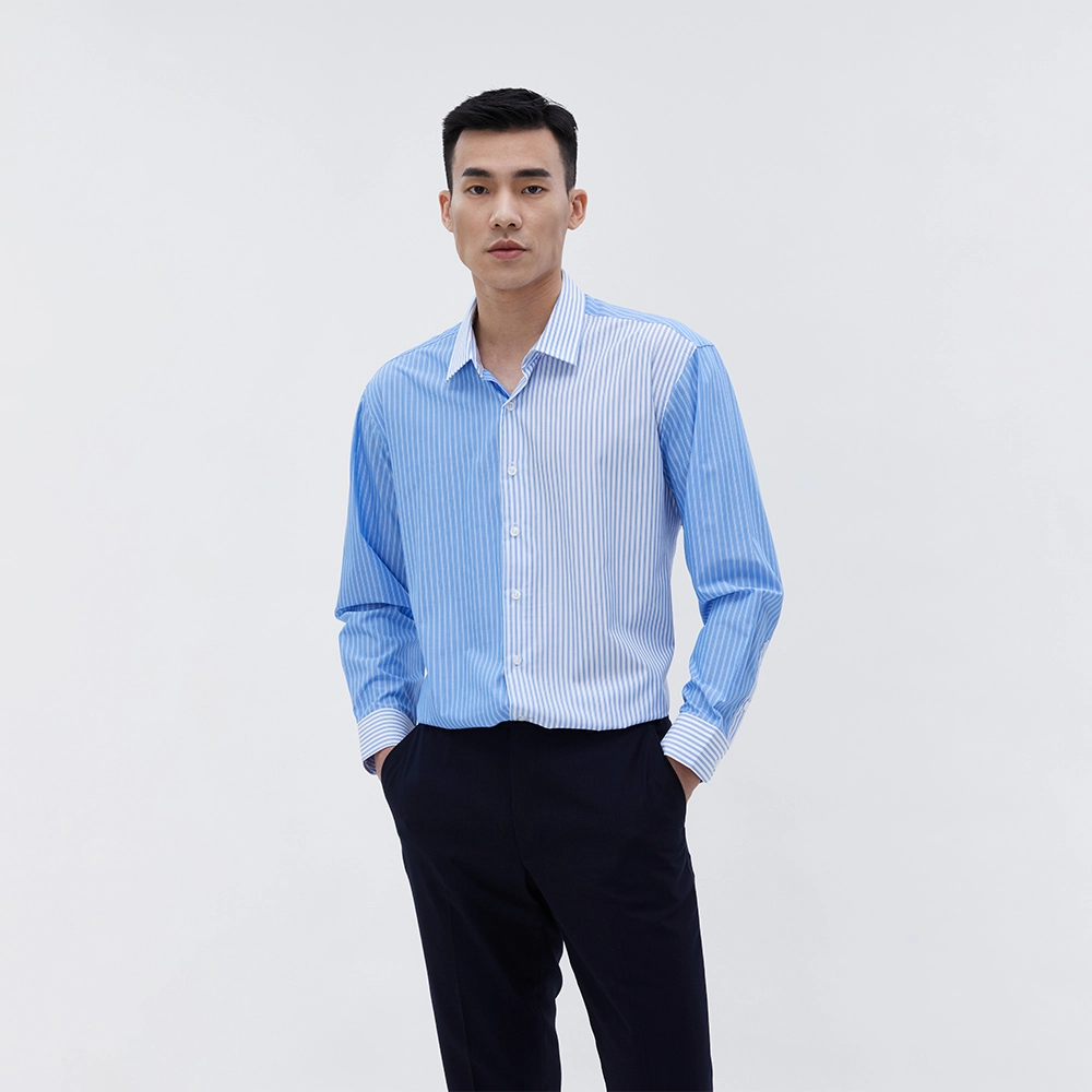 藍色條紋拚色竹纖維長袖襯衫NT$1,880