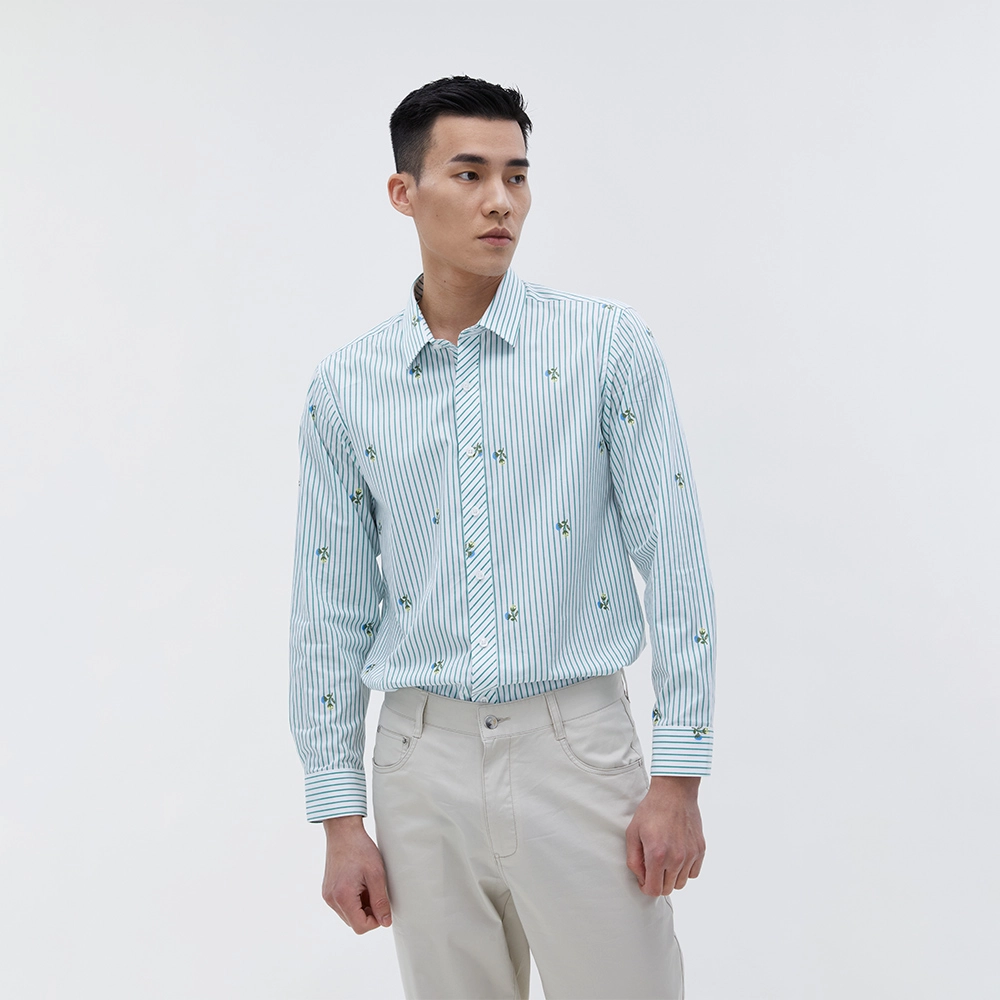 綠色細條紋繡花純棉長袖襯衫NT$1,880 -
