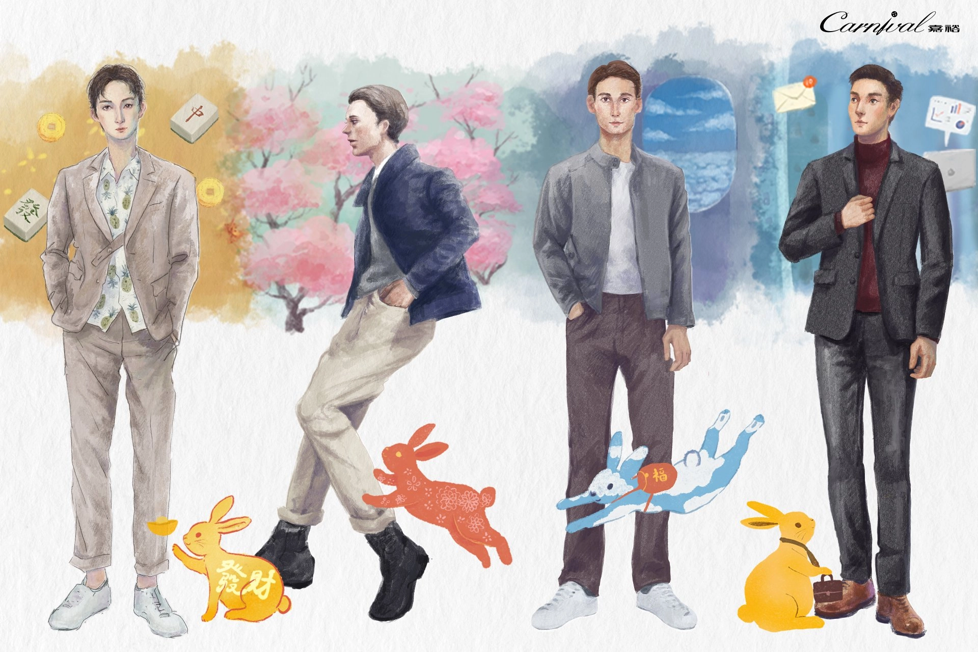 農曆新年即將到來,一切都將有新的開始,以富有幸運意涵的新衣穿搭,為來年迎接好運勢。煥然一新的春節造型,能令神采更顯耀眼,迎向蓬勃精彩的兔年。台灣男裝領導品牌Carnival嘉裕,為都會型男提供新四大情境的穿搭靈感,讓男士們在不同場合都能以最瀟灑俐落的樣貌,展現有型風範。