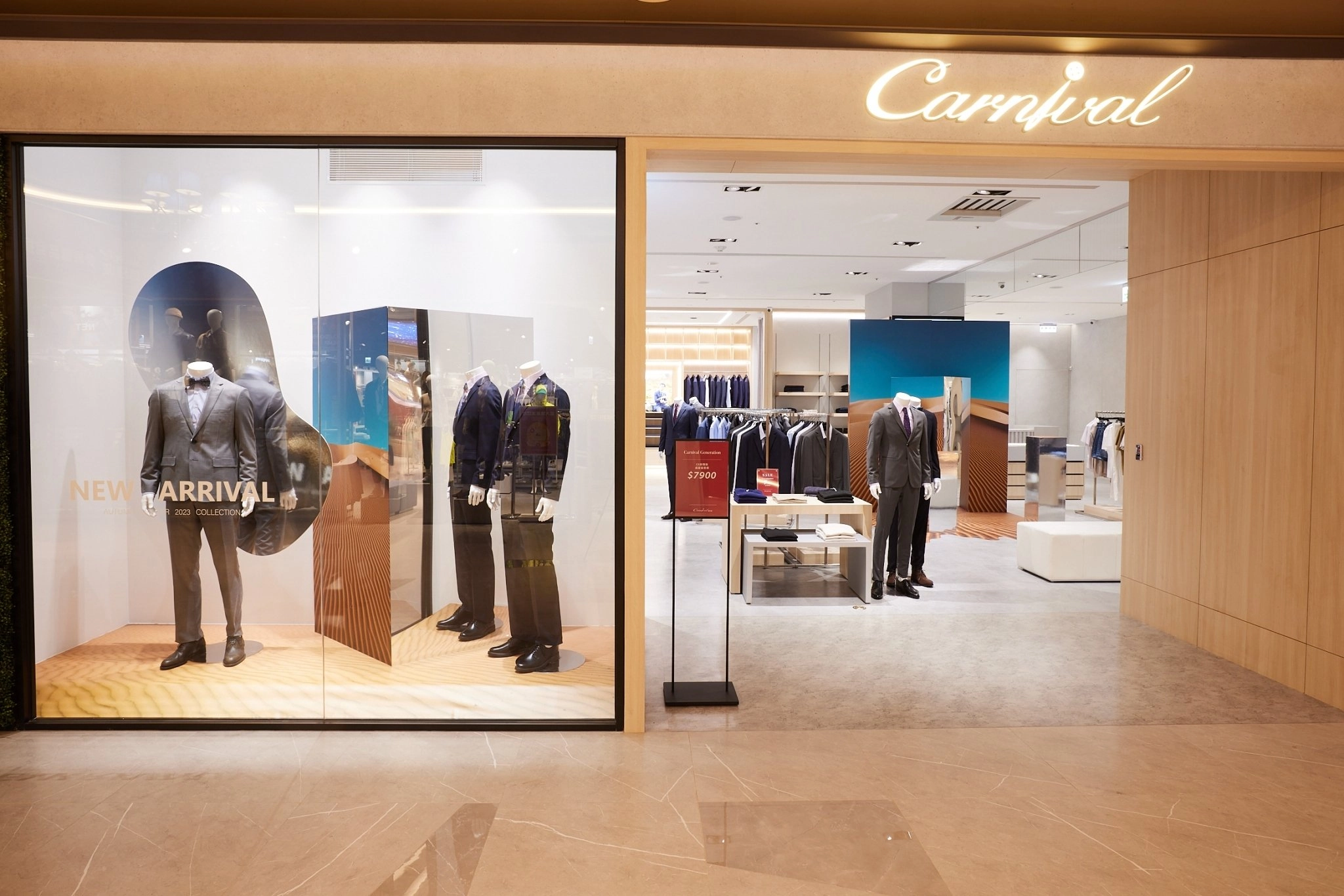 新北最大商場裕隆城今日正式開幕!裕隆集團旗下服裝品牌嘉裕Carnival全新形象概念店進駐裕隆城五樓。店內以開放式設計,明亮空間延伸出寬敞舒適的視覺印象,提供消費者流暢的購物動線。整體採用木質搭配淺灰色調,展現優雅時尚的溫暖氛圍。壁面式陳列,清楚展示各系列產品,讓人一目了然。全新概念店更特別打造全台第一個VIP訂製服空間,提供貴賓感受服裝工藝的尊榮體驗。