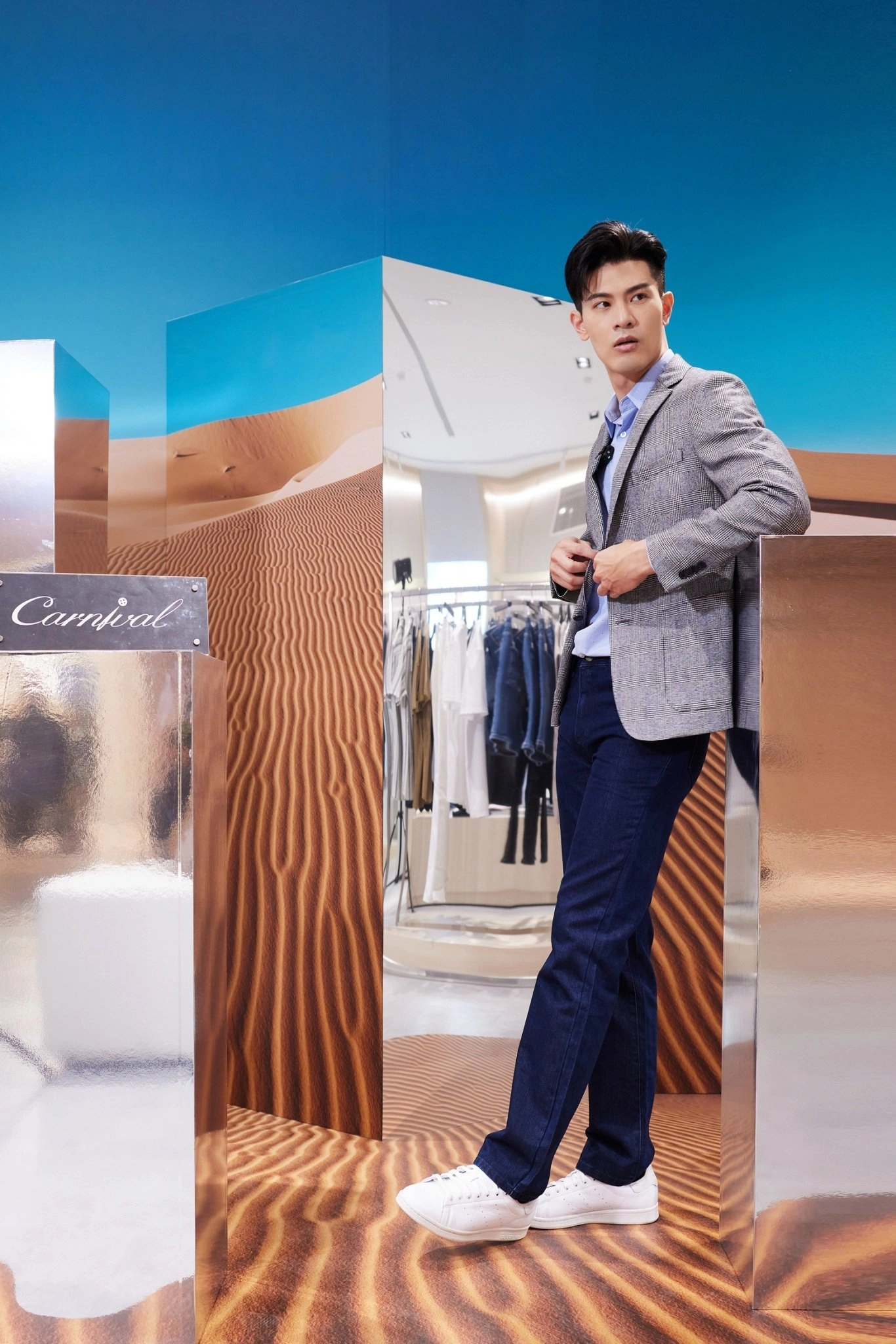 開幕當天特別邀請新生代演員吳承洋親臨店內。吳承洋擁有完美身形比例,不論正裝或休閒造型都能輕鬆駕馭,特別是西裝,英挺帥氣的模樣,總是引起粉絲的熱烈反應。對於穿搭,吳承洋表示:「我從小對於衣服怎麼選、怎麼搭很有自己的想法,後來進入業界耳濡目染,更清楚自己喜歡、適合什麼!相對於流行,我更注重服裝的本身,包含面料、設計剪裁等,反而是我重視的細節。衣服能夠影響一個人所展現出的氣勢與特質,所以穿著舒適與得體,才能輕鬆適應各種場合。」