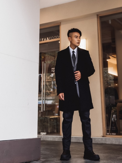 造型師葉璟毅建議,想要在派對中展現制霸氣勢,可選擇獵裝外套,外面罩上長版大衣,保有一定正式感;脫掉大衣後則顯得較休閒。Carnival嘉裕冬季長版大衣,剪裁修身,採用舒適且極度柔軟的Cashmere羊絨,加入導電纖維,能避免衣物摩擦產生靜電,並防止灰塵沾黏,為出席聚會場合的首選。灰色人字紋獵裝以100%高質量純羊毛製成,布面經磨毛處理,保暖且觸感滑順。下半身配直筒丹寧褲,布料含保暖紗成分,保留挺拔輪廓,穿起來顯瘦且舒適。葉璟毅老師也提醒,領帶可選擇與大衣同色調,作為細節上的呼應。