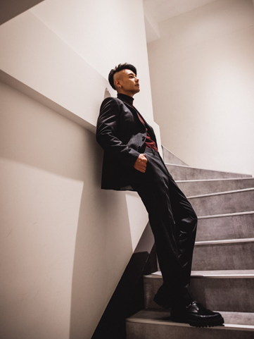 如何能快速從白天工作服轉換成夜晚輕鬆又有型的休閒打扮,葉璟毅老師建議,只要準備一件高領針織衫或帽T,取代西裝外套裡的襯衫與領帶,就能從早到晚維持帥氣無縫接軌,並讓成套西裝在優雅質感中更顯年輕。
