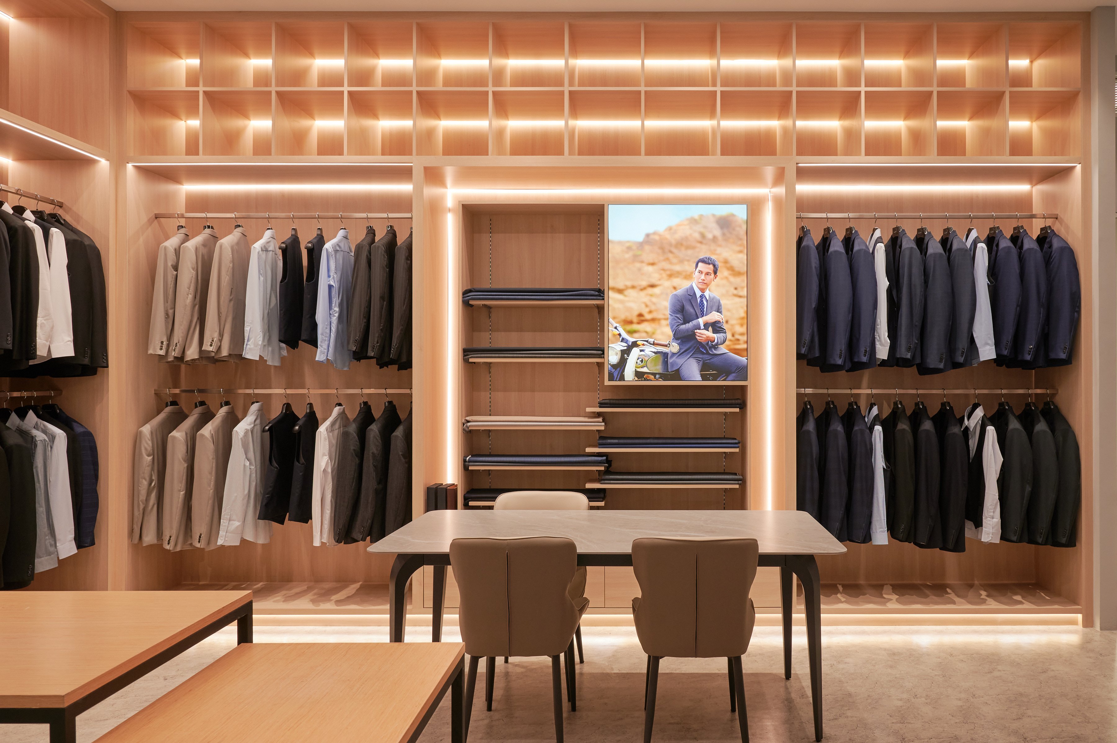 嘉裕全新概念店以開放式設計,明亮空間延伸出寬敞舒適的視覺印象,提供消費者流暢的購物動線。整體採用木質搭配淺灰色調,展現優雅時尚的溫暖氛圍。壁面式陳列,清楚展示各系列產品,讓人一目了然。全新概念店更特別打造全台第一個VIP訂製服空間,提供貴賓感受服裝工藝的尊榮體驗。